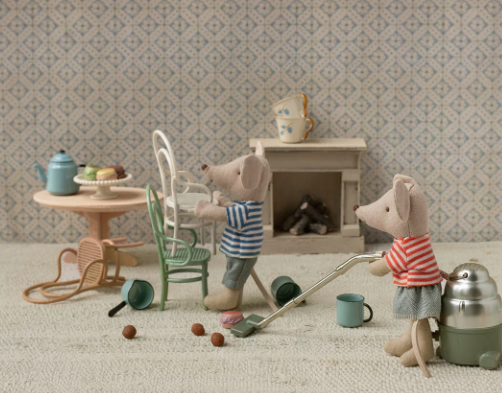 These vintage metal chairs are a perfect fit for Little sister/brother and Big sister/brother mice. They fit perfectly into the small rooms where the mice live. These chairs fit together beautifully with all tables for mice and will look stunning in any room.